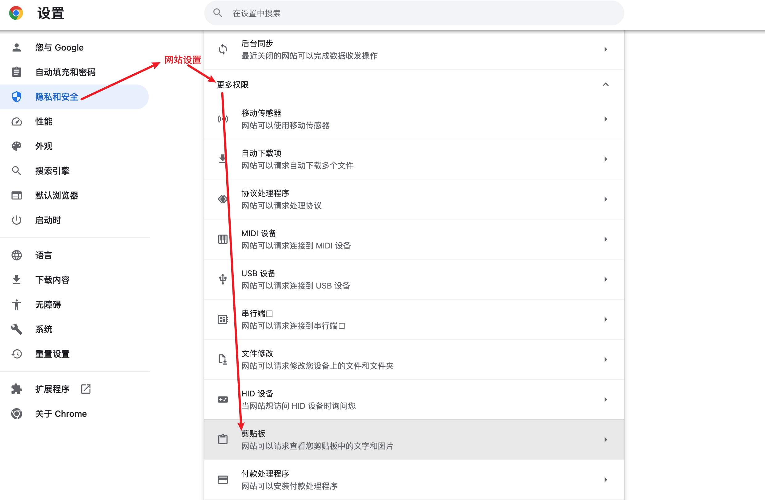 如果没有上述提示,请按照下文步骤开启剪贴板权限: