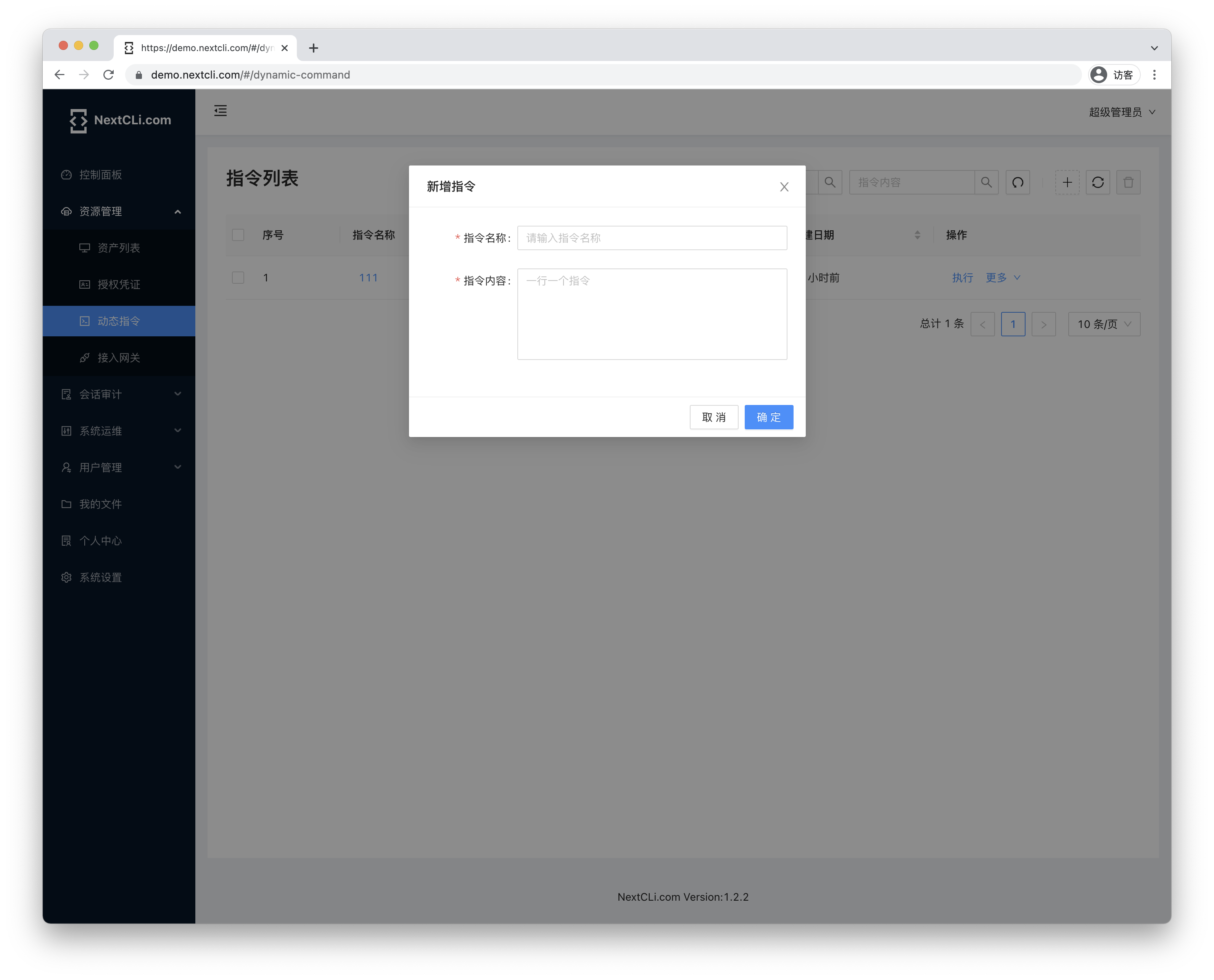 动态指令可以批量执行并实时查看结果,不仅支持预先定义好的指令,并支持实时下发输入的指令。